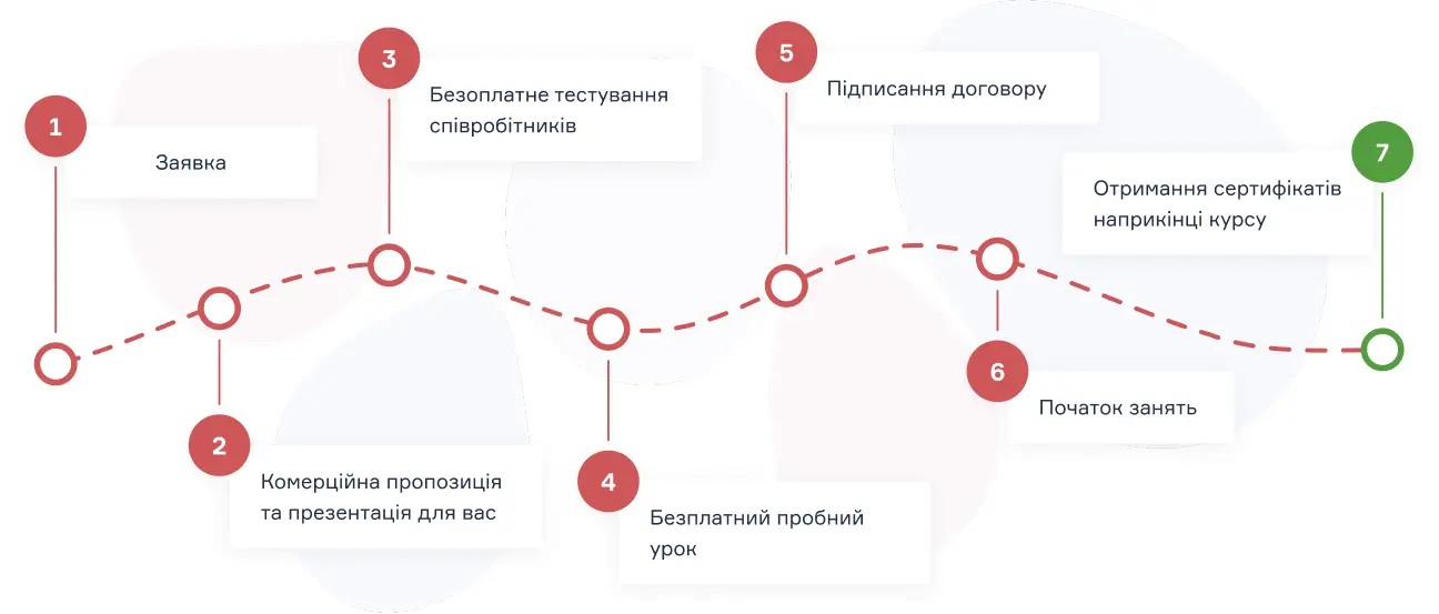 Перевірені методи навчання, персоналізований підхід до кожного студента та кваліфіковані викладачі з багаторічним досвідом неодмінно допоможуть опанувати мову міжнародного спілкування вашому колективу.